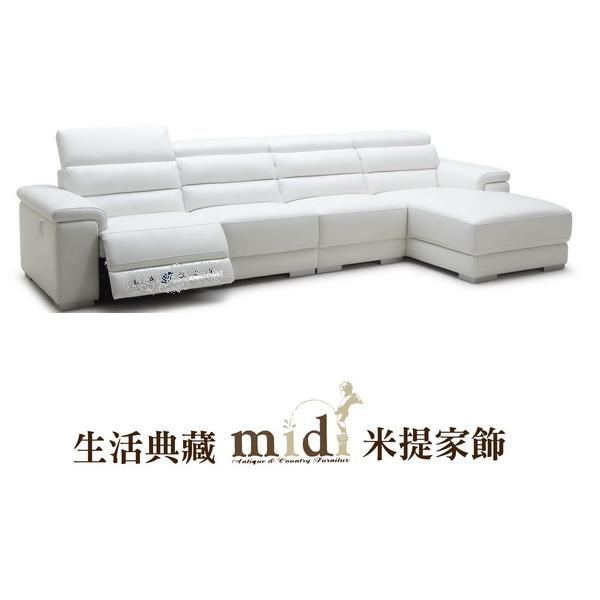 白全牛皮L形電動功能沙發